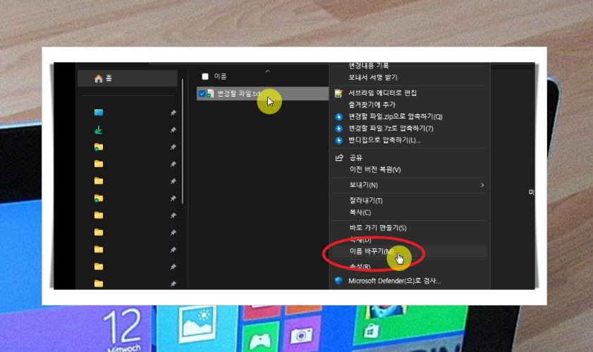 3. 다시 윈도우10의 "내 컴퓨터"로 돌아와서 대상이 되는 것을 선택한 후 마우스 우클릭을 합니다. 그리고 "이름 바꾸기" 메뉴를 선택해 주세요.
