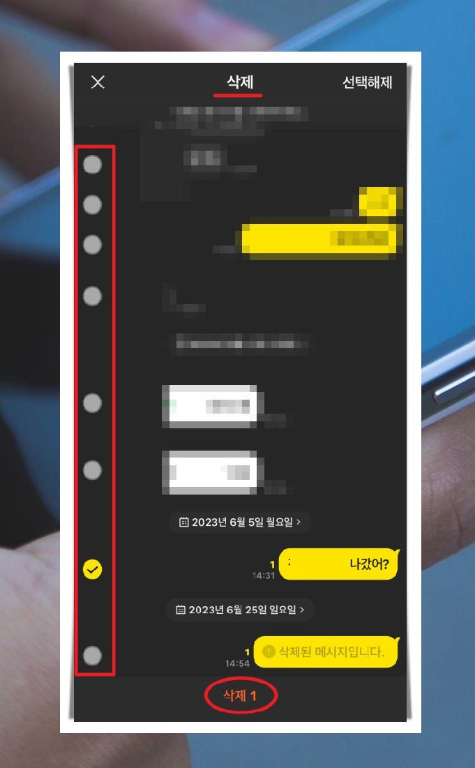 7. 여러 개를 동시에 지울 수 있도록 선택이 가능합니다.
