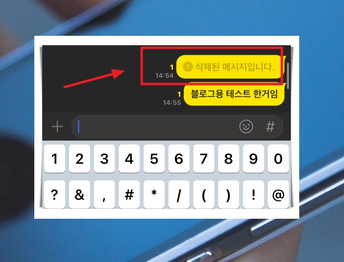 9. 이 경우에도 "삭제된 메시지입니다."라는 흔적이 납는데요. 상대방 폰에서 카톡을 열어보면 해당 내용이 지워지지 않은 채 그대로 있는 것을 확인할 수 있습니다.