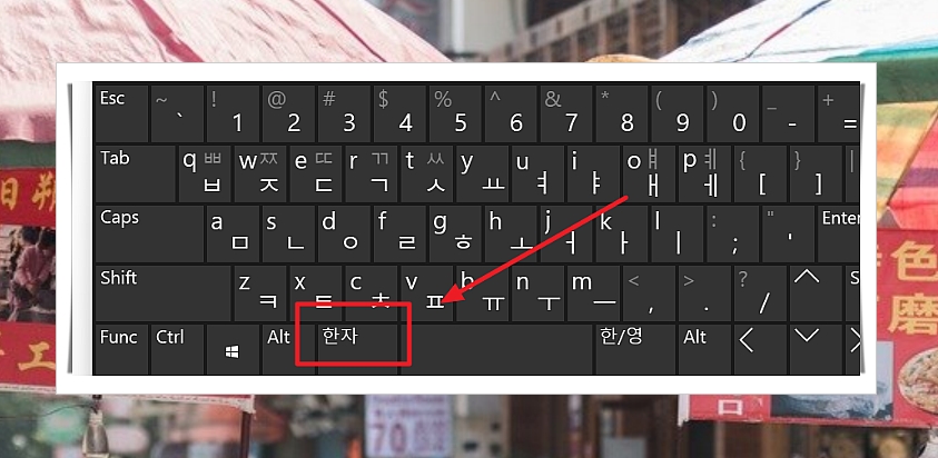 2. 문자 바꾸기에 사용하는 "한자키"는 키보드에 따라서 위치가 다를 수 있는데요. 기본적으로 "한자"라고 표시가 되어 있는데요. 해당 표시가 없다면 좌측이 아닌 우측 컨트롤키(Ctrl)를 누르면 됩니다.