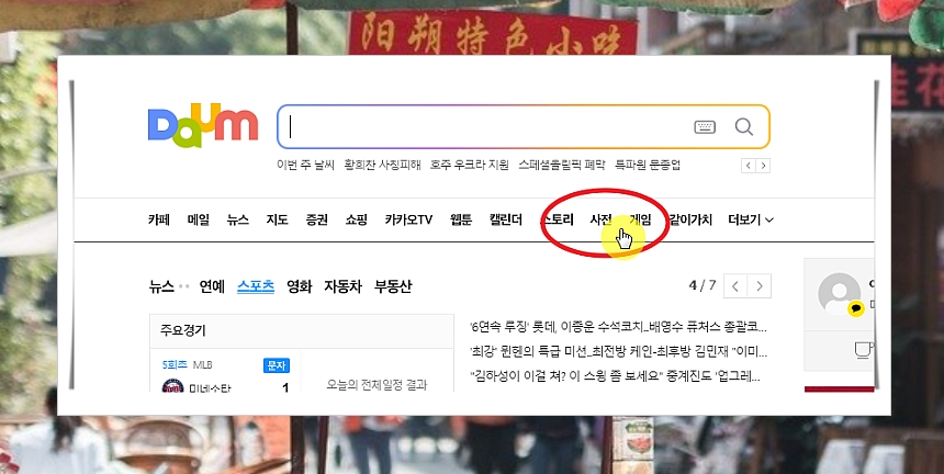 3. 첫번째 방식은 정말 간단했죠. 이번에는 한글 한자로 바꾸기 두 번째 방법을 알려드리도록 하겠습니다. 다음 사이트에서 제공하는 기능인데요. 사이트 메인화면에서 "사전" 메뉴는 선택해 주세요.