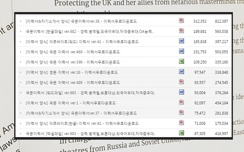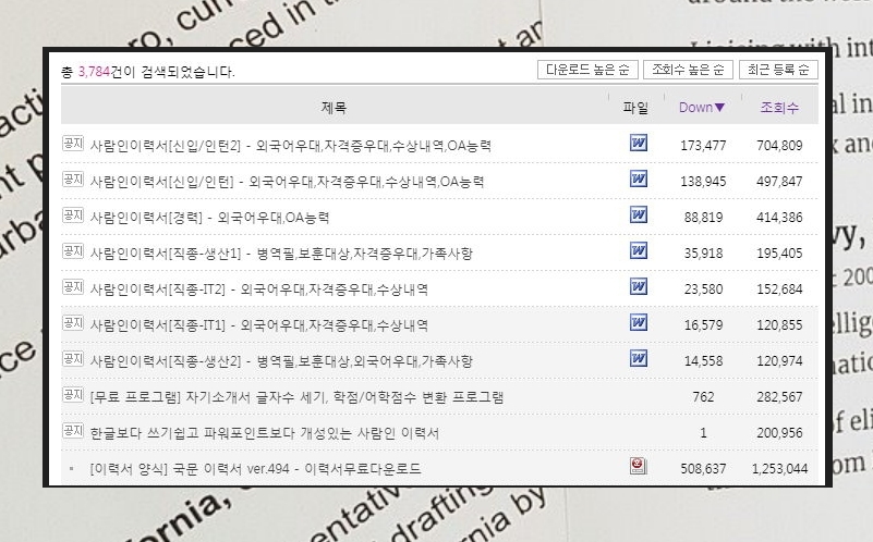 총 3785개의 기본 이력서를 다운로드 받을 수 있습니다.