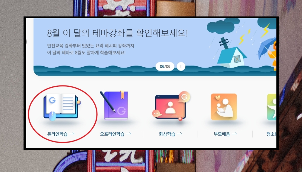 3. 사이트에 접속하면 여러 가지 학습 종류가 나타납니다. 여기에서 "온라인 학습" 메뉴를 선택해주세요. 참고로 오프라인 강좌도 있으니 시간적으로 여유가 있는 분들은 한 번 이용해 보세요.