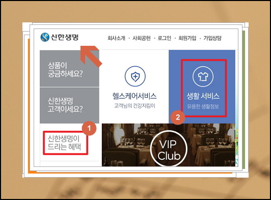 1번에 [혜택] 누르시고, 2번에 [생활 서비스]를 클릭해주세요.
