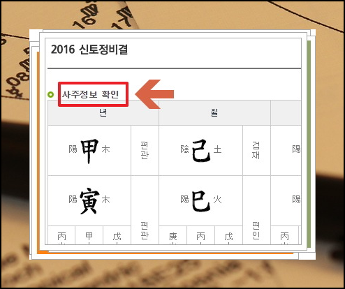 알파고가 한세돌을 이긴 요즘에도 사주풀이를 믿으시는 분들이 계신데요. 아마 많은 분들이 재미로 보시거나 어느정도는 맞는다고 생각해서 보실것 같아요. 저도 거기에 속하는데요. 재미로 한번 보기때문에 사주풀이 도우미 무료사이트를 주로 이용하는데요. 회원가입은 필요없고, 자신의 생년월일이랑 태어난 시만 알면 좋은 풀이를 해준답니다.