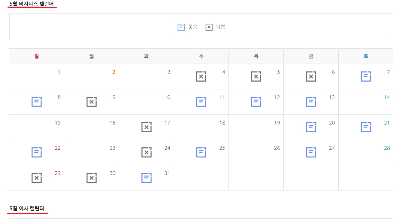 ▼사업적으로 큰 계약을 해야 할 일이 있거나 이사를 준비하는 경우 비즈니스 캘린더와 이사 캘린더를 활용해 보는 것도 좋습니다. 이렇게 우리 일상 속에서 활용할만한 운세 사주 서비스가 많이 있습니다.