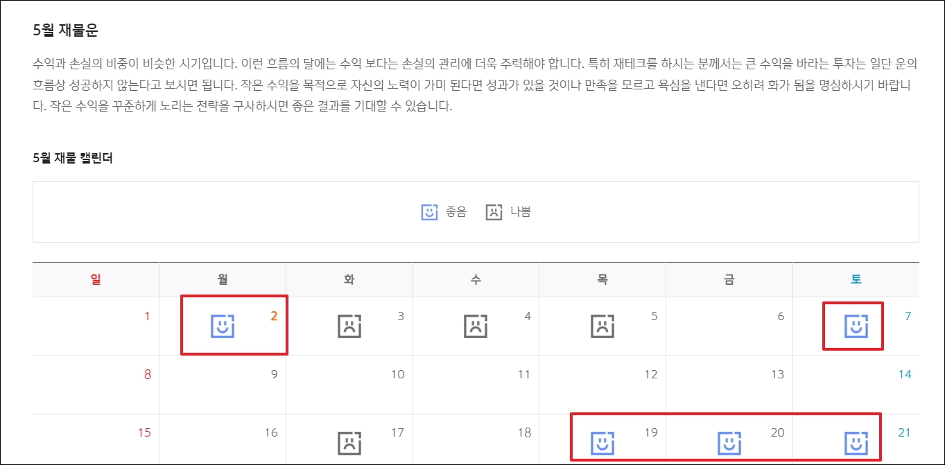▼경제에 관심이 많은 분이라면 생년월일을 통해 재물운을 확인할 수 있습니다. 캘린더를 통해 어느 날에 금전적으로 운수가 좋은지도 알려줍니다.