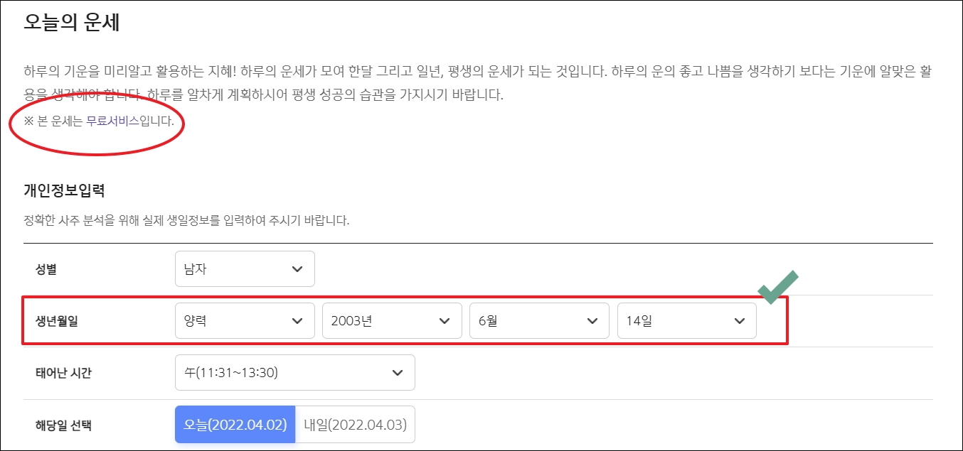 무료로 보는 생년월일 운세 사주 이용하기.