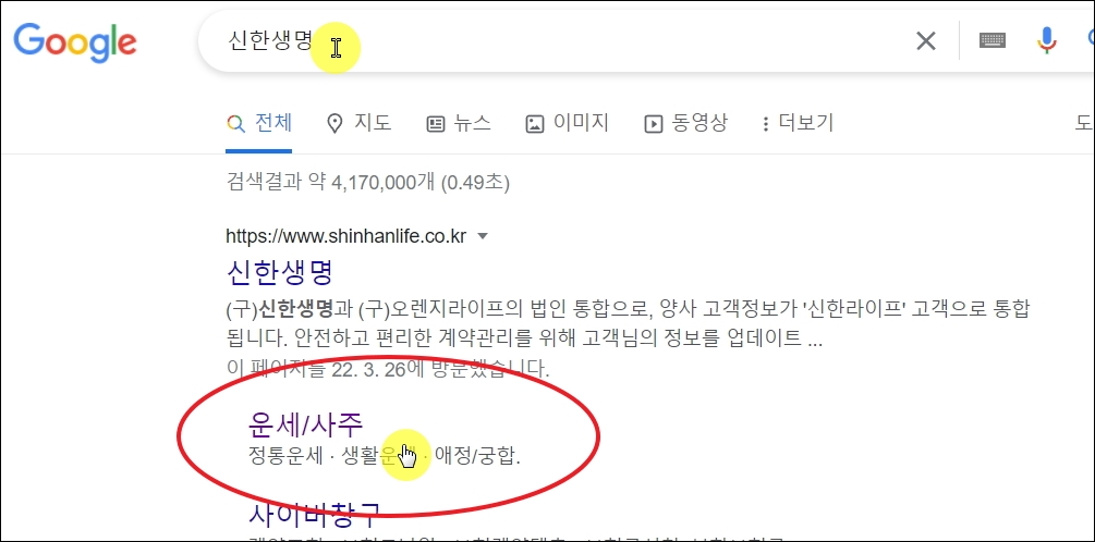 ▼앞서 언급한 사주 서비스는 신한에서 운영하는 공식 홈페이지를 통해 이용이 가능합니다. 검색을 통해 바로 생년월일 운세 사주 페이지로 이동할 수 있죠.
