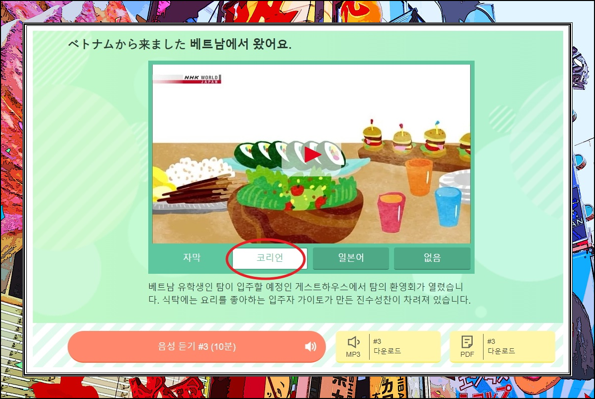 각 레슨은 영상 자료로 볼 수 있게 되어 있는데요, 한국어 자막도 나오기 때문에 공부하고 이해하는데 수월합니다. 여기에도 강의 자료를 MP3 파일과 PDF 파일 자료로 제공하고 있어요.