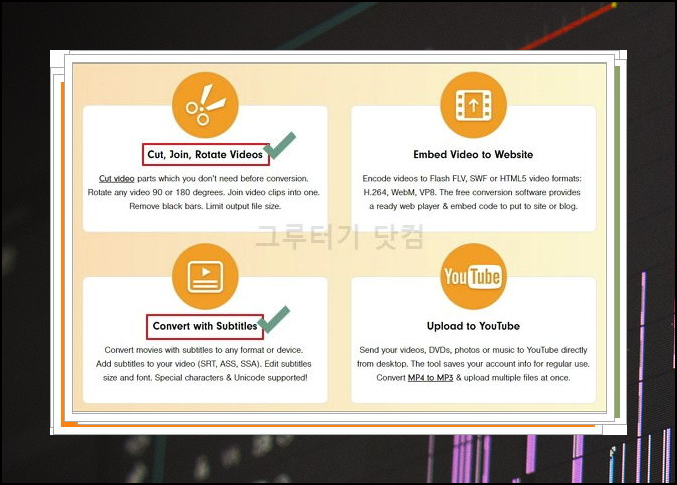 간편하게 버튼 몇 번으로 동영상의 일부를 자르거나 붙일 수도 있고, 자막을 입혀서 변환할 수도 있습니다. 그리고 가장 주요한 장점은 HD 동영상을 AVI로 변환을 진행할 때 품질 손실이 거의 없다는 것입니다.