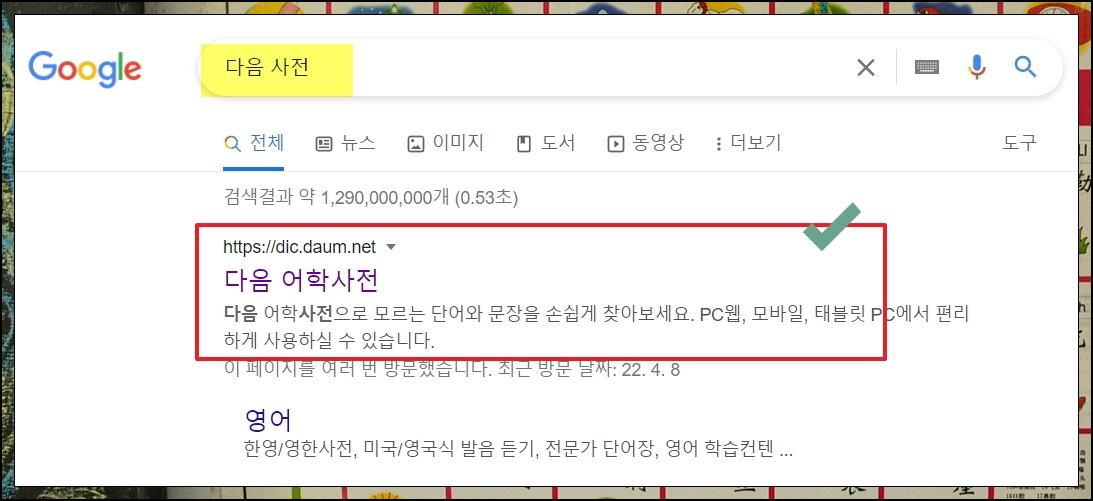 초등 영어단어 1000개 이상 모음을 이용하기 위해서는 다음 사전 사이트에 접속해야 합니다. 많은 분들이 이곳에서 단어장 서비스를 제공하고 있는 것을 모르고 있습니다. 자료의 양이 많아서 정말 좋은 서비스임에도 불구하고 말입니다.