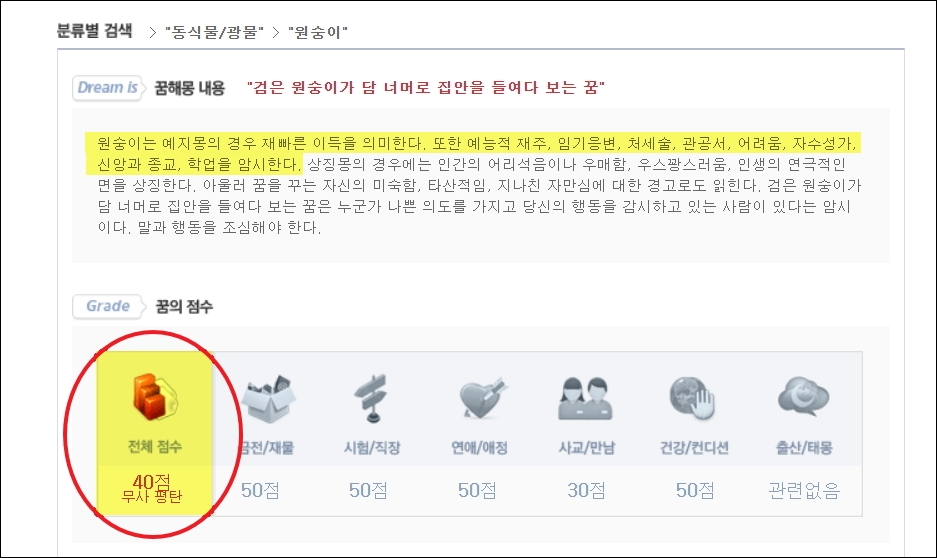 ▼다음과 같이 간단하게 꿈해몽 매용을 살펴보는 것은 물론이고, 핵심 키워드가 가진 상징적인 의미를 깊게 알아볼 수 있습니다. 더 나아가 점수를 통해 얼마나 좋은 꿈인지 알아보는 것도 가능하죠.