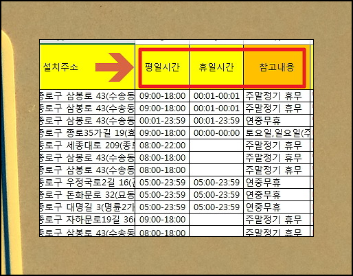 위 파일 된 내용을 보시면 일단 설치된 위치가(주소) 가장 중요하고요. 그다음에는 해당 발급기 운영시간을 꼭 확인하셔야 됩니다. 발급기라고 해서 무조건 24시간 이용 가능한 것이 아니라서요. 그리고 각 지역에 따라 휴무 일정도 다 다르답니다.