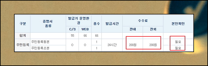 주민등록등본 발급 수수료는 200원이고, 본인확인이 필요하다고 합니다. 여기에는 24시간이라고 적혀 있지만 자치단체 무인민원발급창구 운영시간에 따라 달라질 수 있으니 좀전에 올려드린 파일에서 전화번호를 찾아 한번 문의하시는 것이 좋습니다.