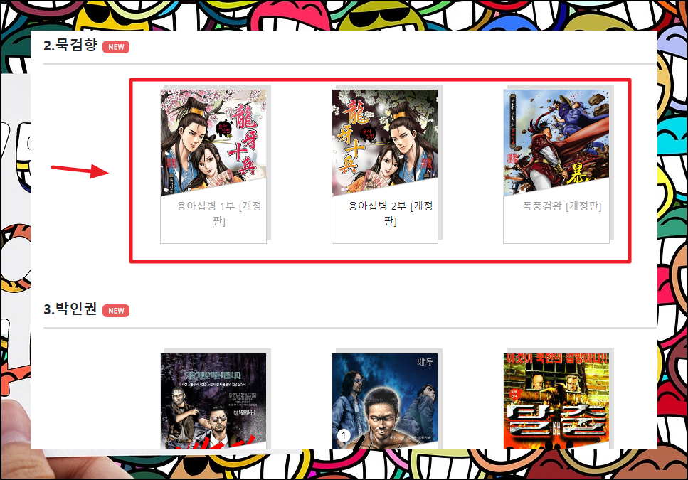국내 무협이나 액션 장르를 좋아하시나요? 이런 경우에는 제가 첫 번째로 알려드리는 사이트가 좋습니다. 새로운 작품이 주기적으로 업데이트 되는 것은 물론이고, 완전 무료로 처음부터 끝까지 감상할 수 있기 때문이죠. 최근에 나온 작품 중에는 유명 무협만화 작가인 묵검향의 용아십병과 폭풍검왕 개정판이 있네요.