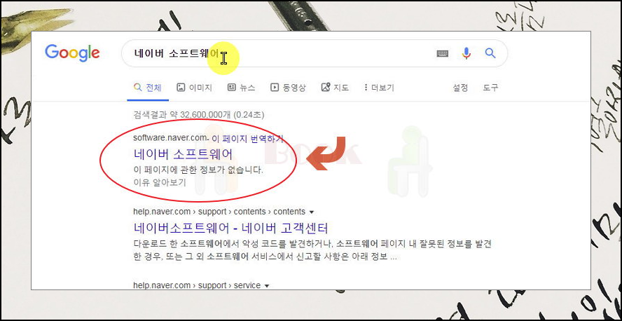 네이버 소프트웨어 사이트에 접속했어요. 홈페이지 상단에 있는 검색창에 '캘리그라피'를 입력한 후 검색 버튼을 눌러보세요.