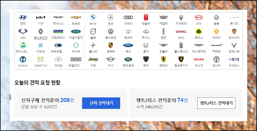 사이트에 접속하면 메인화면에 여러 차량 브랜드가 보일텐데요. 여기에서 "르노삼성자동차"가 아닌 "르노코리아"를 선택해 주세요. 다른 곳에서 인수했기 때문에 브랜드 명칭이 달라졌는데요. 여전히 일부 사람들은 르노삼성자동차로 부르기도 합니다.
