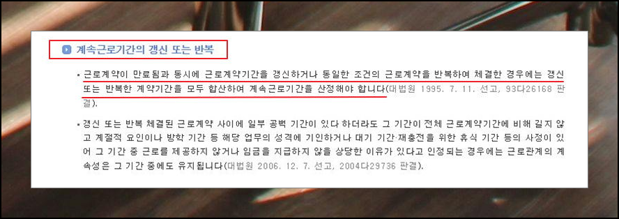 근로계약이 만료되면서 근로계약기간을 갱신하거나 동일 조건으로 근로계약을 반복하여 체결하는 경우가 있습니다. 이 모든 기간을 합산하여 계소근로기간으로 산정하기 때문에 퇴직금 계산에 참고하시길 바랍니다.
