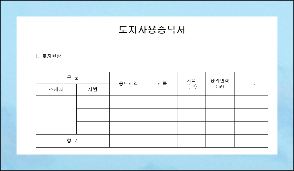 신탁사마다 토지사용승낙서의 형식이 다를 수 있습니다. 어떤 곳은 정해진 양식이 있고, 또 어떤 곳은 없을 수 있어요. 일반적으로 사용되는 토지사용승낙서 양식을 참고하시면 도움이 될 것 같습니다. 이러한 절차들이 복잡해 보일 수 있지만, 체계적으로 준비하면 충분히 해결할 수 있습니다.