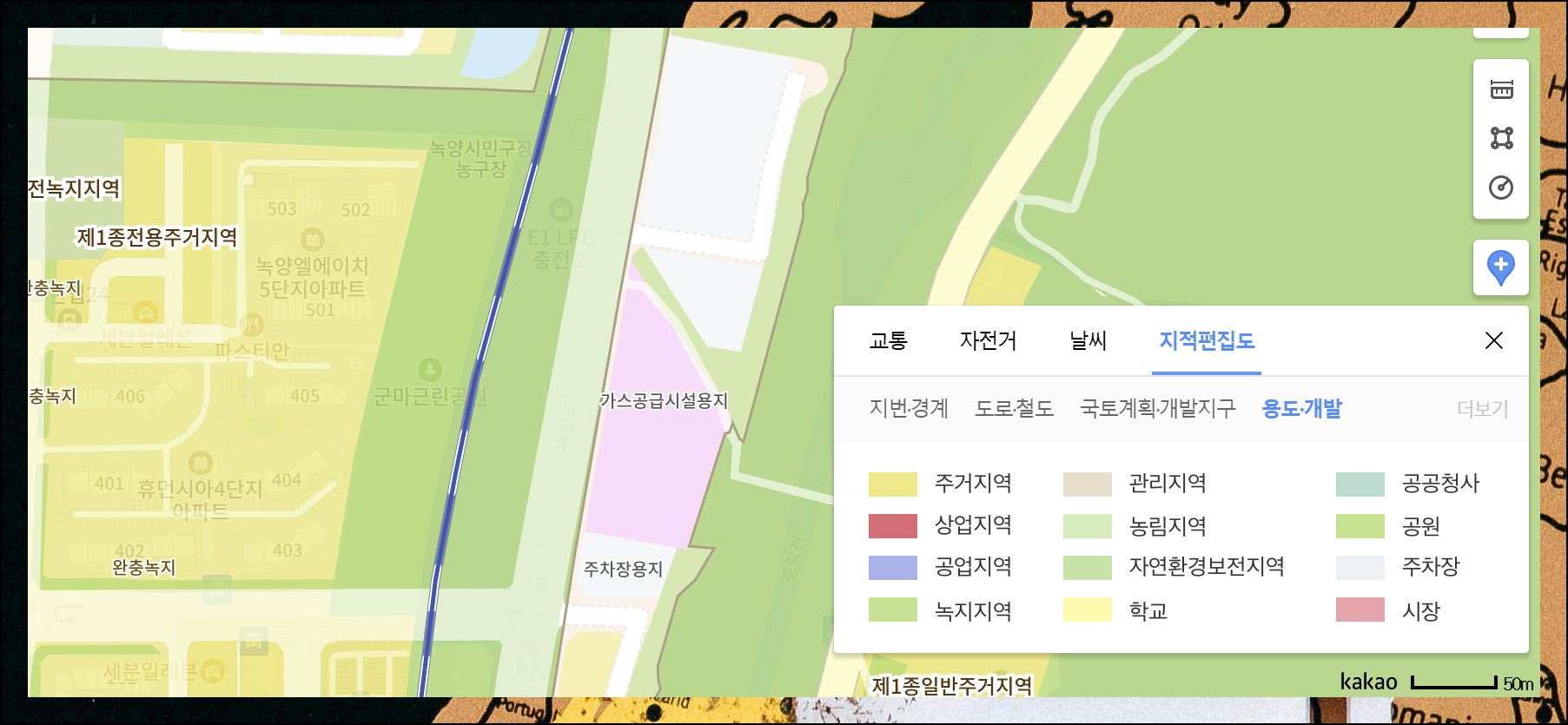 카카오맵은 일상생활에 필요한 기본 지도 기능과 함께 토지 정보까지 제공하는 실용적인 서비스입니다. 누구나 쉽게 이용할 수 있어요. 지적도를 보기 원하는 분들에게 추천합니다.