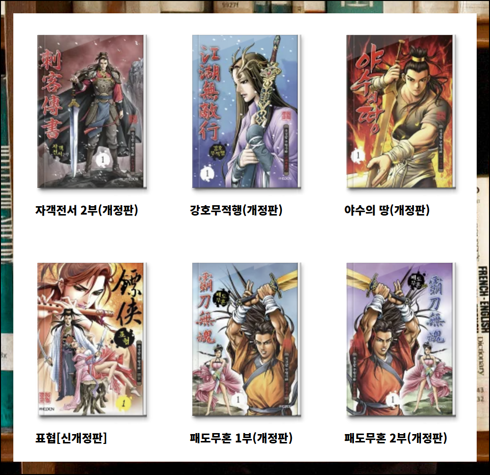 현재 공전절후부터 비정자객사까지 10개가 넘는 묵검향의 작품을 감상할 수 있어요. 목록은 계속 업데이트가 되고 있습니다. 인기 만화는 상단에 표시되어 쉽게 찾을 수 있죠.