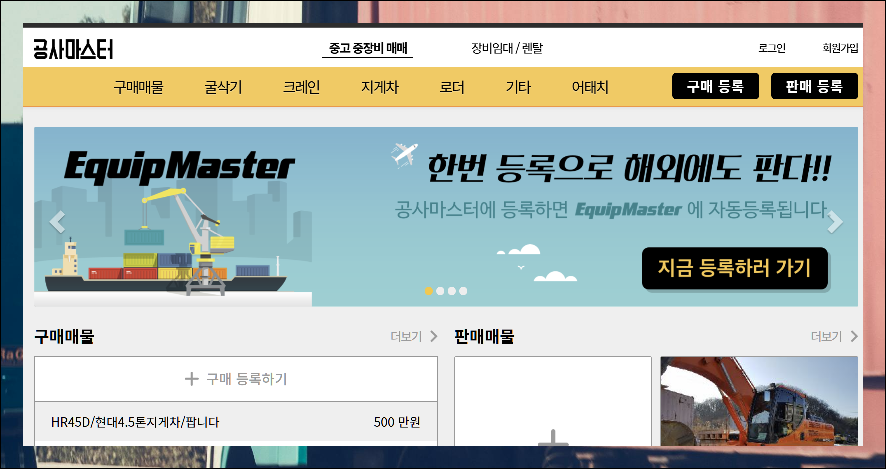 공사마스터는 새롭게 등장한 중고 중장비 거래 플랫폼입니다. 깔끔한 홈페이지 구성으로 원하는 매물을 쉽게 찾을 수 있어요. 전용 앱도 출시되어 모바일에서도 편리하게 이용 가능합니다. 중기매매상사들과 협력하여 상당한 양의 매물 정보를 보유하고 있으니 참고하세요. 그린중기의 매물도 함께 확인할 수 있어 편리합니다.