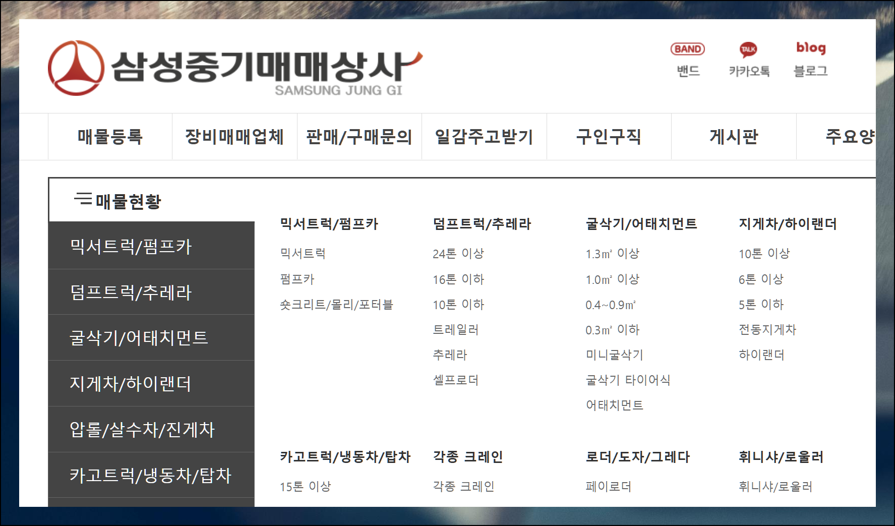 삼성 중기매매상사는 믹서트럭부터 지게차까지 다양한 중장비를 취급하고 있습니다. 매물마다 상세한 사진과 함께 정확한 가격 정보를 제공해요. 고가의 거래인 만큼 투명한 정보 제공으로 신뢰도를 높이고 있습니다. 중기매매상사의 전문성을 바탕으로 구매 결정에 필요한 모든 정보를 한눈에 확인할 수 있어요. 거래 전 매물 실사도 가능합니다.