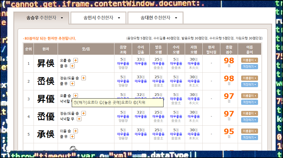 이름 짓기에서 가장 중요한 한자 선택을 할 차레인데요. 먼저 의미를 살펴보세요. 프로그램이 제공하는 5가지 성명학 이론 평가를 참고하면 더 좋은 선택이 가능합니다.