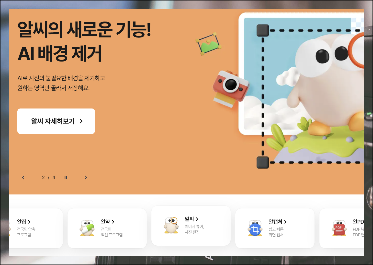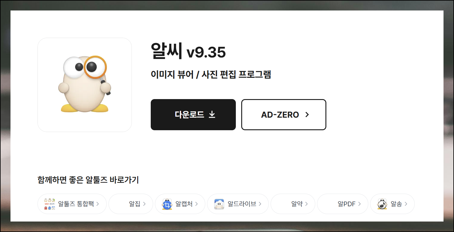 검색창에 "알툴즈"를 입력하여 제작사 사이트를 찾아 접속해 주세요. 주소창에 직접 입력해서 들어가도 좋습니다. 이동한 페이지에서 안전하고 빠르게 알씨 페이지로 이동하는 메뉴를 빠르게 찾을 수 있습니다.