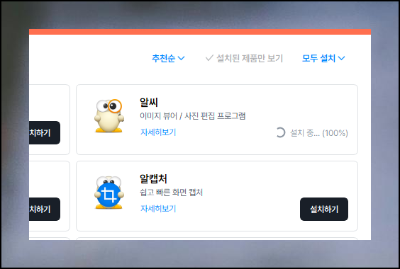 설치 과정 중에 광고성 프로그램 추천 받게 되는데요. 이용 여부와 현재 사용하는 컴퓨터의 용량을 생각해서 선택하면 됩니다. 그럼 다운로드 및 설치가 완료되면 알씨 동영상 프로그램을 실행해주세요.
