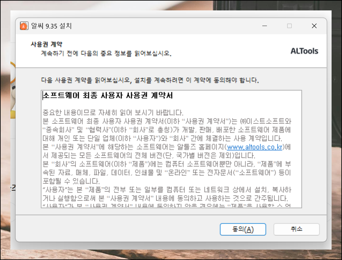 설치 과정은 어렵지 않습니다. 약관에 동의하고 다음 버튼만 누르면 순식간에 끝나요.