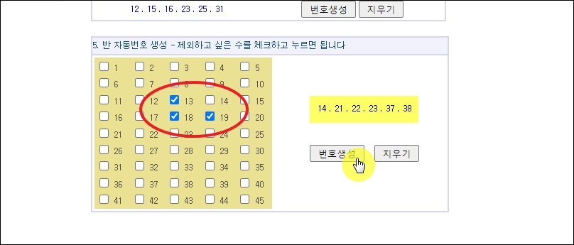 ▼사람마다 로또 복권을 구매할 때 사용하기 싫은 번호가 있습니다. 이럴 때에는 다음과 같이 일부 번호를 제외할 수 있습니다. 특정 번호를 제외한 로또 추첨번호 생성기를 사용해 보시길 바랍니다.