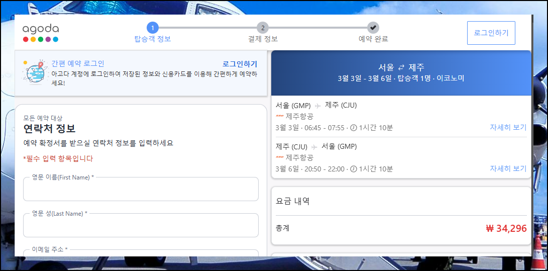 제주도 왕복 항공권이 3만원 초반에 예매할 수 있습니다. 금일 알아보니 실제로 32,321원짜리 티켓을 구할 수 있었습니다. 이런 식으로 비행기표를 싸게 구하면 여행 만족도가 올라가요. 교통비에서 아낀 여행경비를 가지고, 다른 재미있는 일에 사용할 수도 있죠.