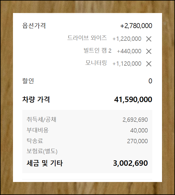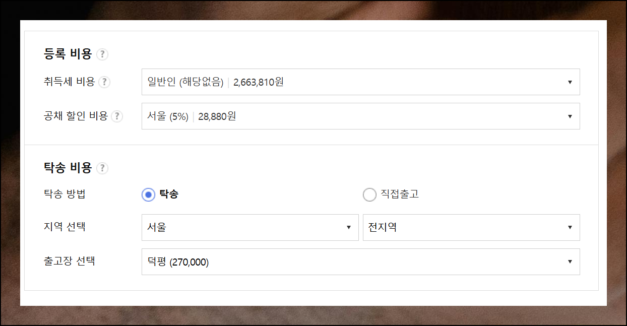 마지막으로 취득세, 공채 할인, 탁송료 등을 입력하세요. 모든 절차가 완료되면 다나와 사이트 오른쪽에서 최종 구매 금액을 확인하고 비교할 수 있습니다. 이를 통해 실제 지출할 총액을 미리 파악하고 예산 계획을 세울 수 있어요.