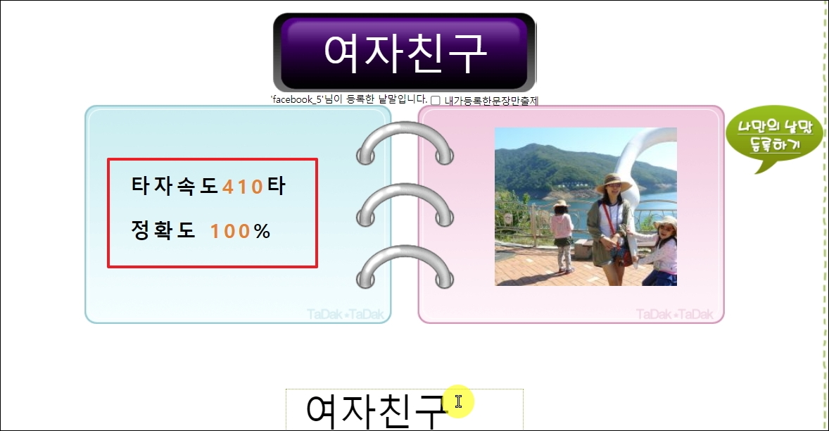 ▼어느 정도 자판을 익히면 낱말을 입력하면서 타자연습을 해야 합니다. 타자속도와 정확도를 알려주기 때문에 나의 실력을 정확하게 가늠할 수 있습니다.
