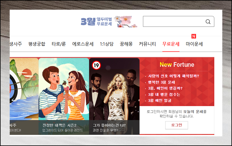 사이트에 접속한 후에는 화면 우측에 위치한 무료운세 버튼을 클릭하세요. 이 간단한 과정으로 다양한 운세 서비스를 이용할 수 있어요.