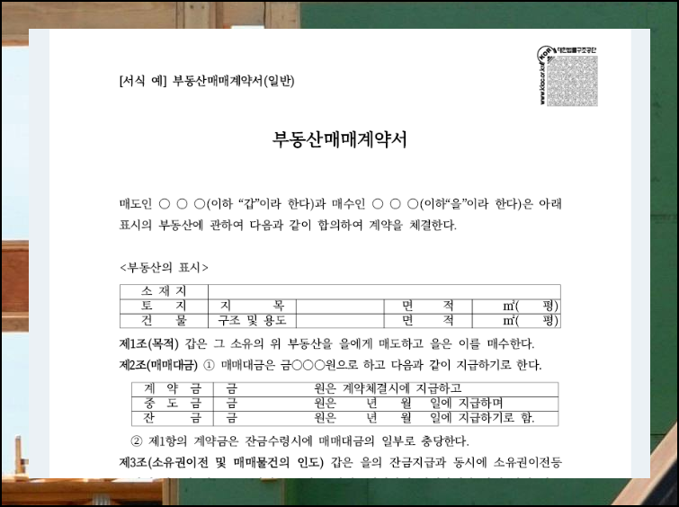 부동산 거래는 일생에 몇 번 경험하지 않는 큰 계약이라 실수하기 쉽습니다. 이런 불안함을 해소하려면 공식적으로 검증된 계약서 양식을 사용하는 것이 가장 확실한 방법이에요.