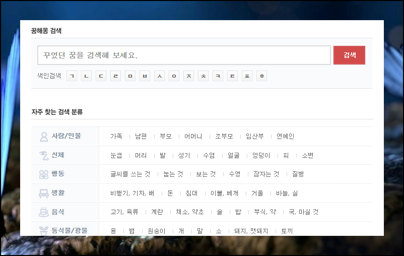 키워드 검색이나 카테고리 선택 두 가지 방식으로 원하는 해몽을 빠르게 찾아볼 수 있으며, 개인 운세와 관련된 추가 정보도 함께 확인하실 수 있어요.