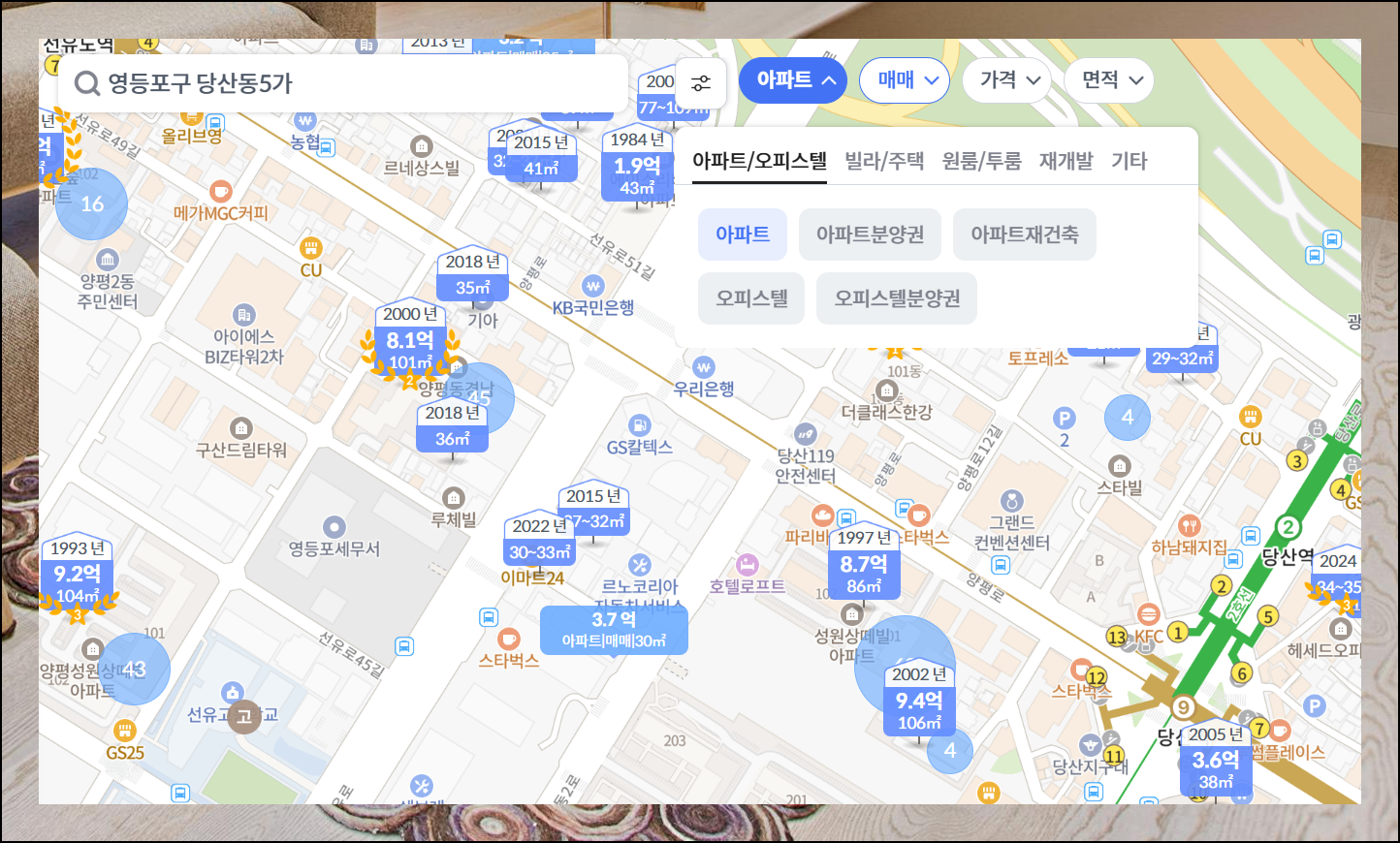 KB부동산에서는 아파트뿐만 아니라 연립주택, 다세대, 상가, 사무실, 원룸, 공장까지 다양한 물건을 검색할 수 있어요. 아파트만 찾고 계시다면 매물 종류에서 [아파트] 옵션을 선택해 시간을 절약해보세요.