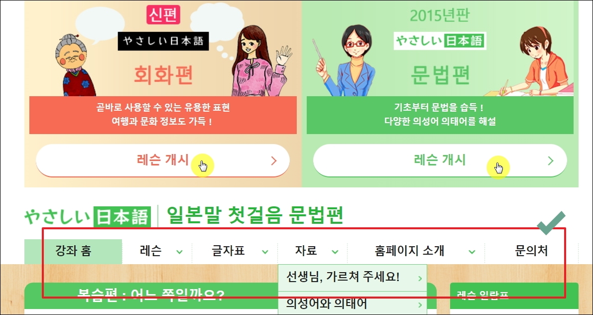 ▼일본의 공공방송인 NHK에서는 높은 퀄리티의 일본어 강좌 사이트를 운영하고 있습니다. 모든 레슨을 무료로 들을 수 있고, 학습자료도 무상으로 제공됩니다. 일본어 배우기 위해 인터넷 연결이 되어 있는 컴퓨터만 있으면 됩니다.