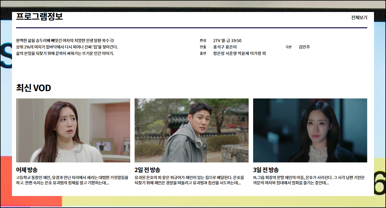 더 많은 콘텐츠를 원한다면 VOD 다시보기 옆에 있는 [전체보기] 버튼을 눌러보세요. 이 웹사이트는 정말 편리하게 구성되어 있어요.