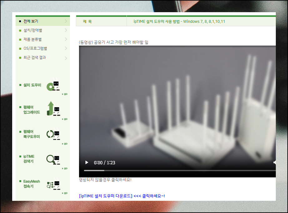 공유기 설치 프로그램은 매우 쉽게 사용할 수 있도록 만들어져 있습니다. 그렇기 때문에 단계별 지침만 따라가면 되는데요. 여기에 더하여 다음과 같이 영상 가이드도 함께 제공됩니다.