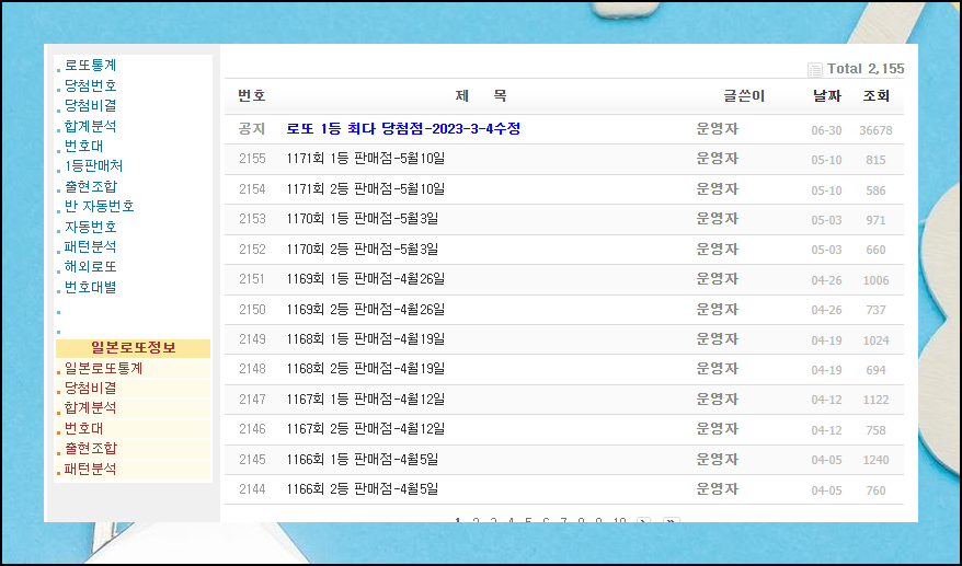 통계 자료를 살펴보려면 먼저 "로또 게시판" 메뉴를 선택해 주세요. 이곳에서는 과거의 다양한 당첨 순서와 패턴을 한눈에 확인할 수 있어요.