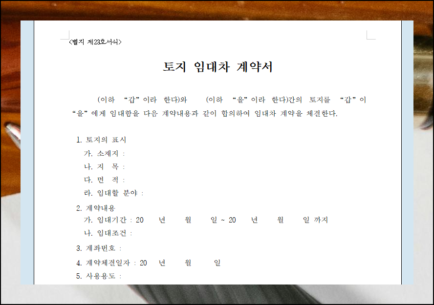 토지 임대차 계약서 무료양식 첨부 및 다운로드 가이드