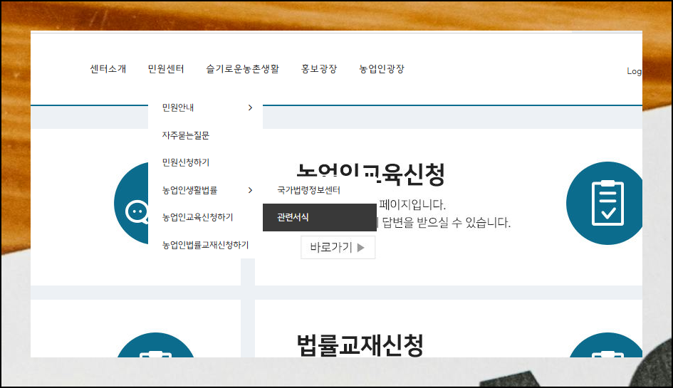 농업인 교류센터에 접속하면 FAQ와 민원신청 등 농어민을 위한 다양한 서비스를 만나볼 수 있습니다. 문서 파일을 내려받으려면 "민원 센터" → "농업인 생활법률" → "관련 서식" 순으로 클릭해주세요.