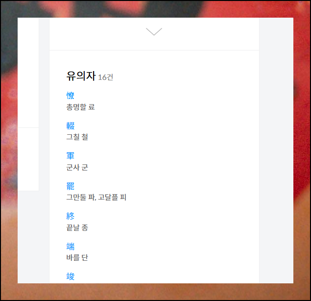 그래야 서로 연관되어서 머릿속에 더 오래 남거든요. 검색기 활용법만 제대로 알아도 한자에 대한 실력을 크게 향상 시킬 수 있습니다.