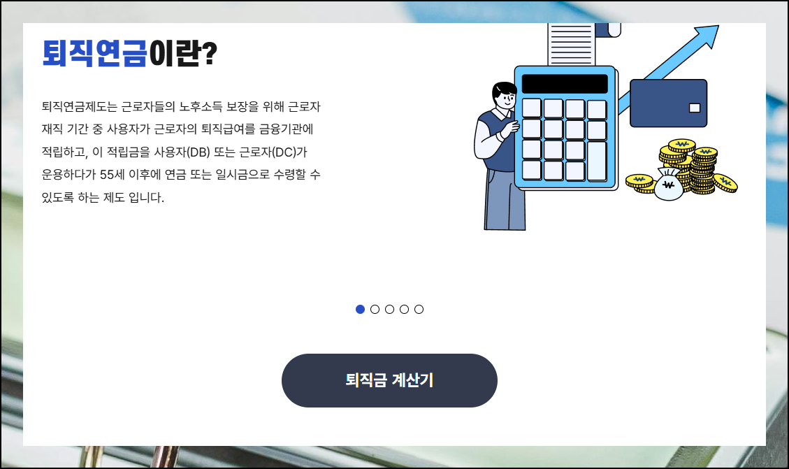 설명 글 아래쪽에는 본격적인 계산 프로그램으로 넘어가는 "퇴직금 계산기" 버튼이 준비되어 있어요.