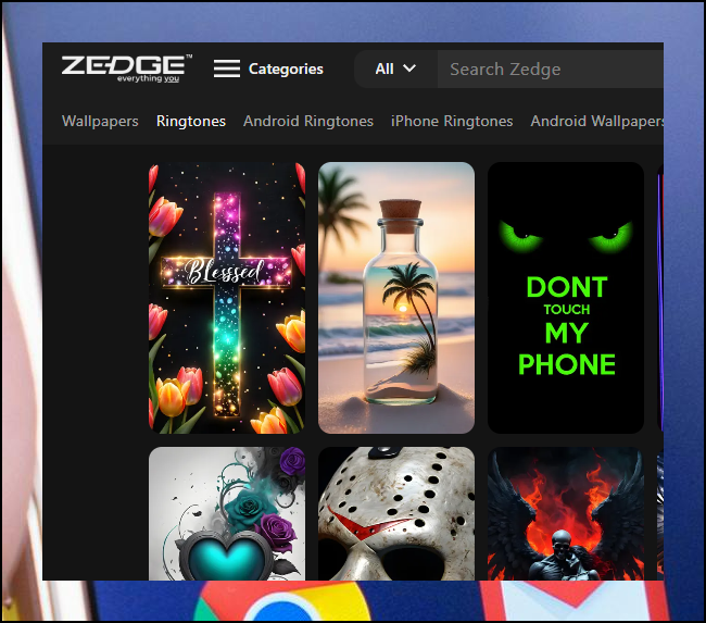 첫 번째는 zedge라는 해외 사이트입니다. 모바일 앱도 있지만, 컴퓨터 웹브라우저에서도 충분히 편리하게 사용할 수 있어요.