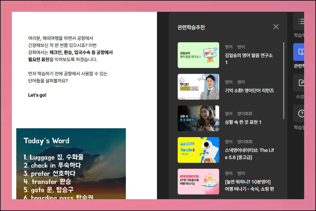 전문 강사들이 제작한 체계적인 커리큘럼으로 기본 대화부터 실생활 회화까지 단계별로 배울 수 있습니다. 인터넷이 되는 곳이면 어디든 이용할 수 있기 때문에 혼자 공부하기에 제격이에요. 이러한 좋은방법을 공유해드릴테니 활용해보시길 바랍니다.